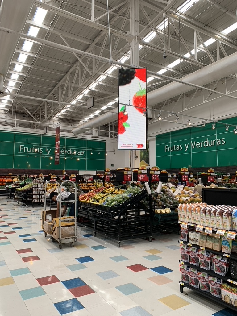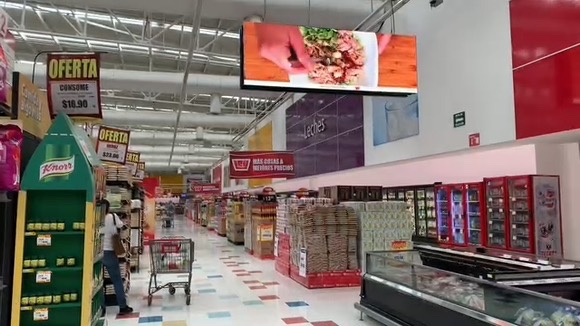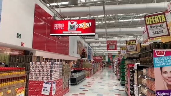 En Casa Ley, PantallasLed5G ha instalado una red de pantallas LED 5G verticales estratégicamente ubicadas a lo largo de toda la tienda, ofreciendo publicidad digital en supermercados con una cobertura visual total.
